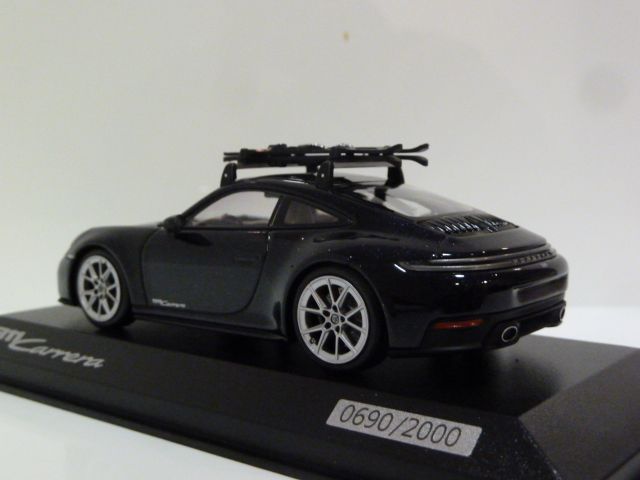 WAP0201650SSKI Minichamps Porsche 911 (992.2) Carrera Carbon Black Metallic 1:43 w/ Skies